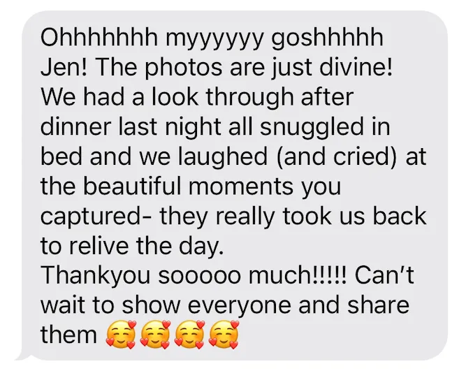 Hi, I’m Jen. I know how it feels—you’re so excited for your wedding day, but there’s that little worry in the back of your mind. Will it feel like an endless photoshoot? Will the photos actually feel like you?