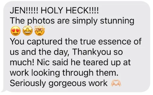 From here I will send you my Wedding Welcome Guide to help with planning and will touch base in regular intervals prior to the day to assist with the flow of the day and answer any questions that pop up.